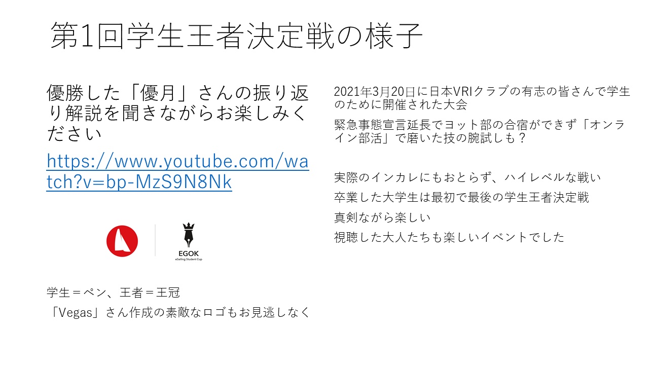 優月さんによる2020年第1回eSailing Japan Cupの紹介動画です。