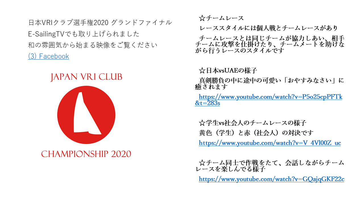 日本のeSailingコミュニティ「日本VRIクラブ」のプロモーション(「High5」さん提供)。